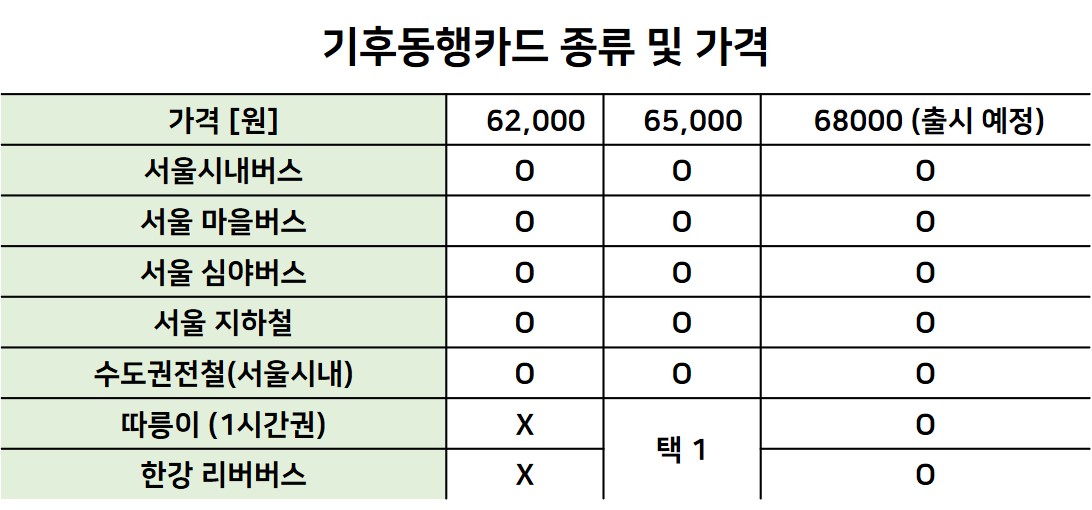 자가용을 사용하는 대신 지하철과 버스 그리고 서울자전거인 따릉이를 이용하여 대기 환경오염을 줄여보고자하는 취지로 만든 카드입니다. 이 카드 하나만 있으면 30일간 서울시내의 대중교통, 따릉이를 무제한으로 사용할수 있습니다.