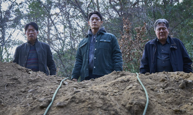 네 사람이 도착한 곳은 강원도의 어느 민간인이 접근할 수 없는 첩첩산중 고지에 위치한 무덤이었습니다. 지관 상덕은 그곳의 지세를 살피자마자 "이곳은 사람이 묻힐 곳이 아니다"라며 악지 중의 악지임을 경고합니다. 하지만 거액의 보수와 화림의 설득 끝에 그들은 결국 파묘를 결정하게 되고, 관을 꺼내는 순간부터 돌이킬 수 없는 재앙의 문이 열립니다.